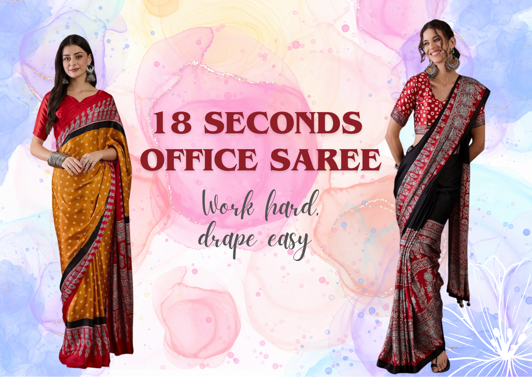 Red Readymade Crepe Silk Saree