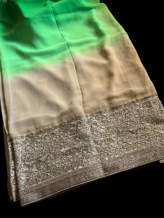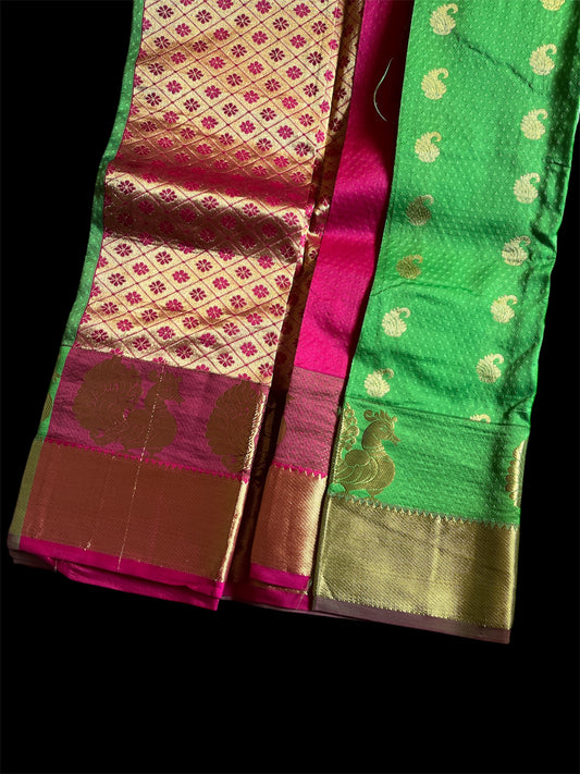 Green South Silk Readymade Saree (Clearance)