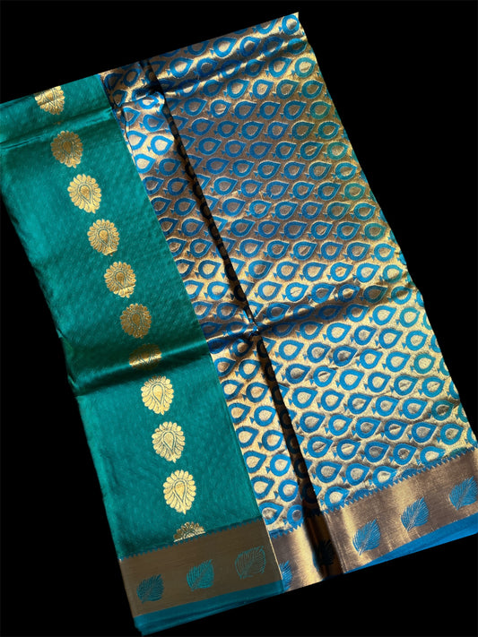 Teal Green South Silk Readymade Saree (Clearance)