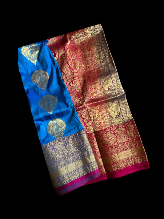 Blue South Silk Readymade Saree (Clearance)