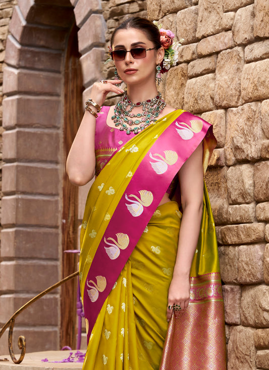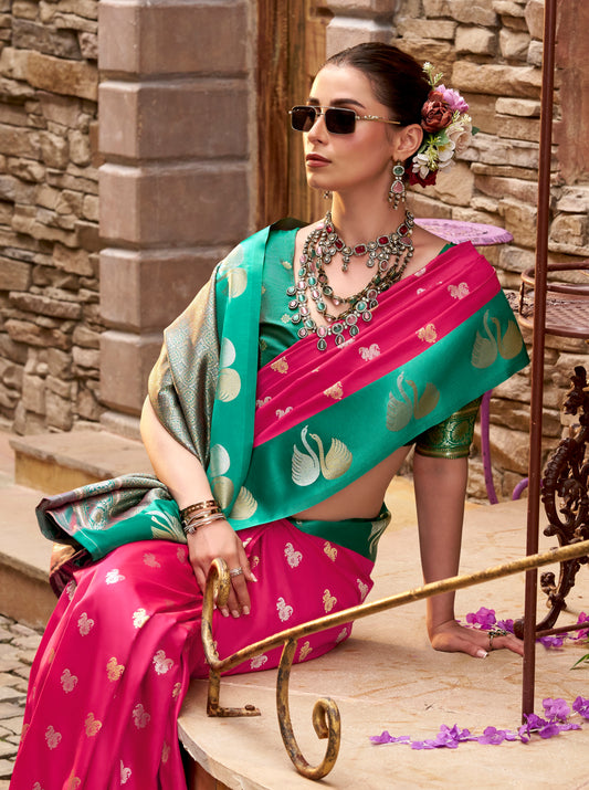 Mauve Pink Satin Silk Readymade/Easy Saree