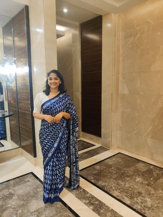 Navy Blue Color Office Wear Patola Crepe Silk Easy/Readymade Saree