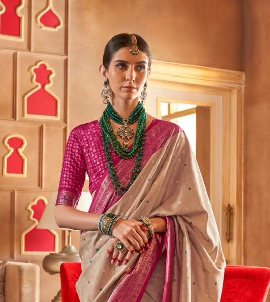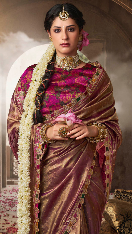 Brown Color Designer Banarasi Tissue Silk Readymade/Easy Saree