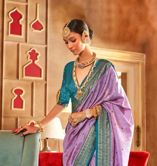 Light Blue Color Patola Silk Readymade/Easy Saree