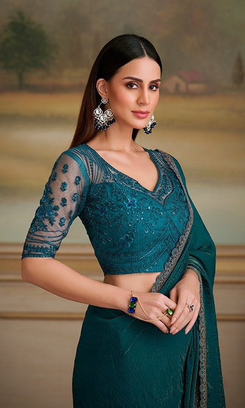 Teal Green Tone Soft Silk Readymade/Easy Saree