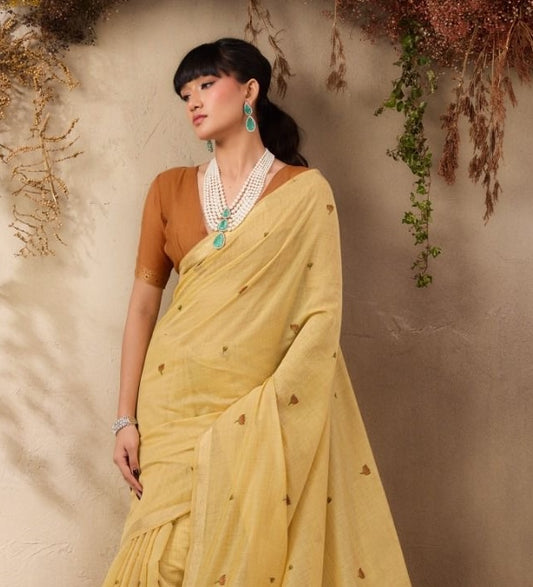 Champagne beige Tussar Silk Readymade/Easy Saree