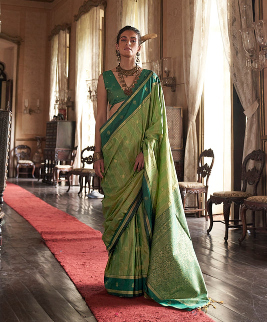 Parrot Green Linen Office Wear Readymade/Easy Saree