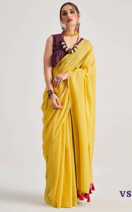 Yellow Mul Cotton Casual Readymade/Easy Saree