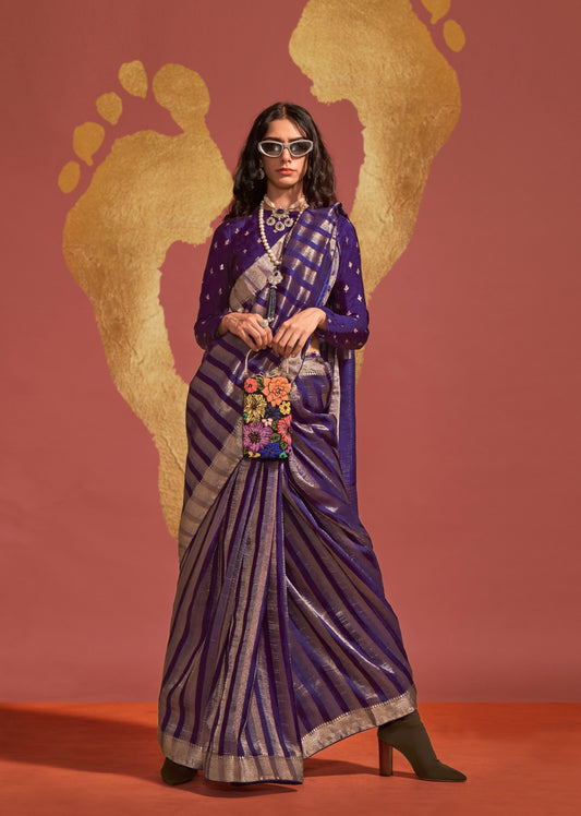 Purple Color Banarasi Silk Readymade/Easy Saree