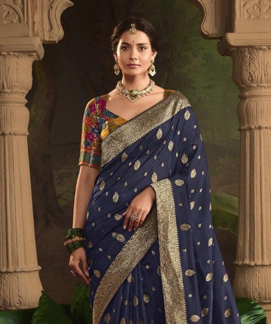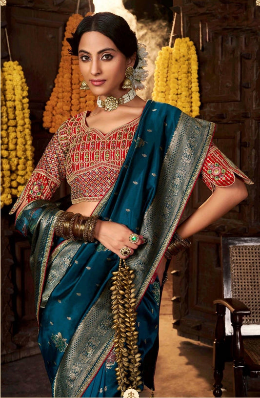 Blue Color Banarasi Silk Readymade/Easy Saree