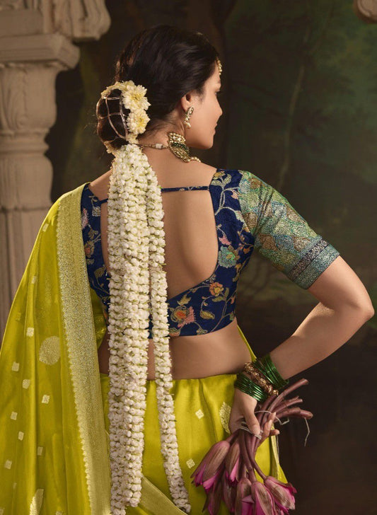 Green Color Designer Banarasi Tissue Silk Readymade/Easy Saree