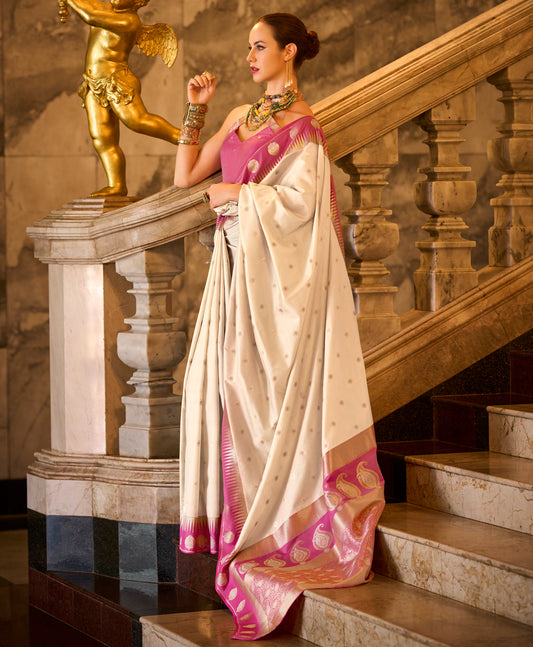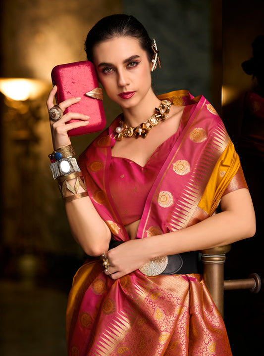 Magenta Color Banarasi Silk Readymade/Easy Saree