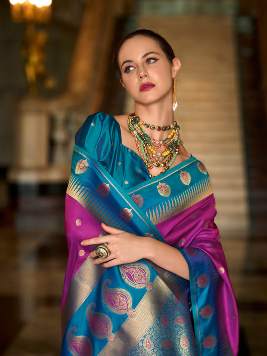 Turquoise Color Banarasi Silk Readymade/Easy Saree