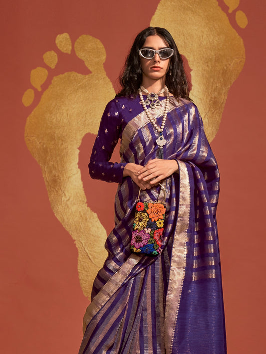 Purple Color Banarasi Silk Readymade/Easy Saree
