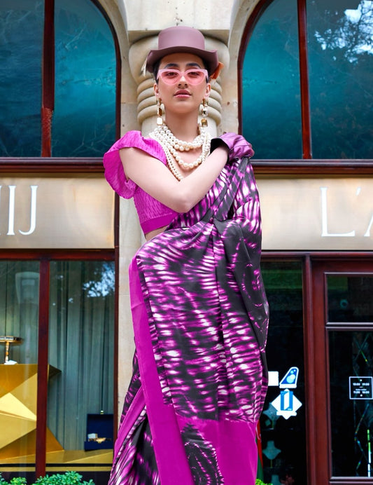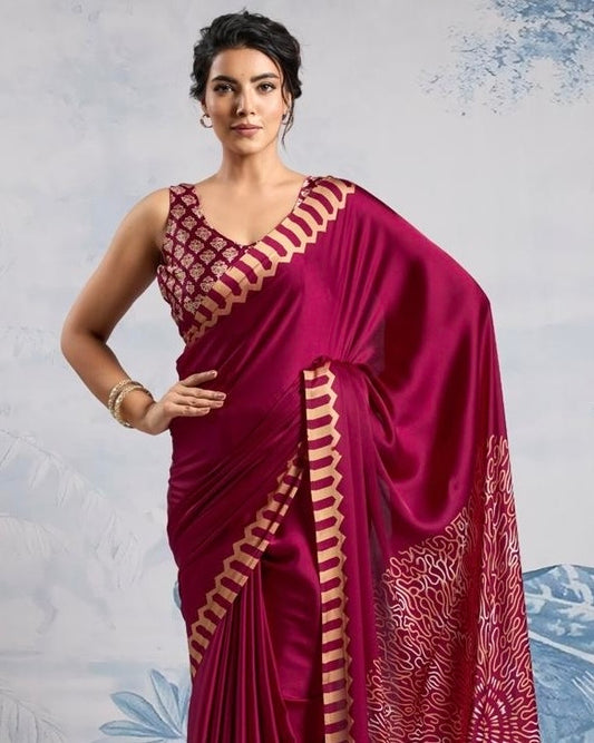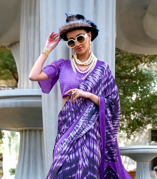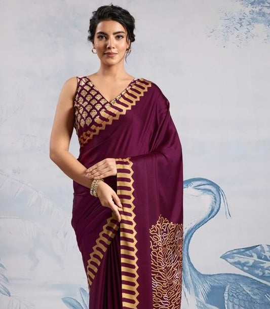 Purple Crepe Silk Casual Readymade/Easy Saree