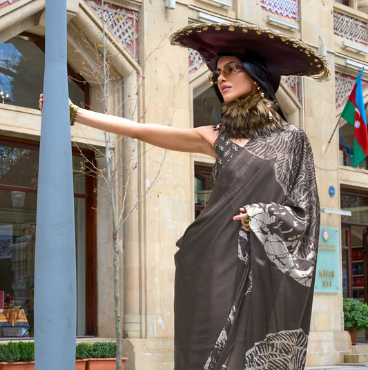 Brown Crepe Silk Casual Readymade/Easy Saree