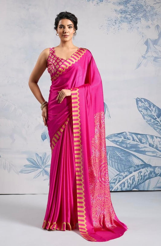 Pink Crepe Silk Casual Readymade/Easy Saree