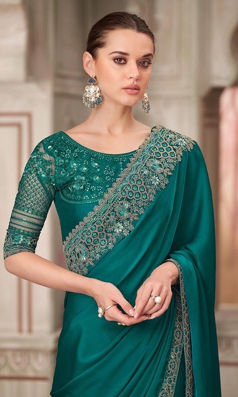 Teal Color Cocktail Readymade Saree