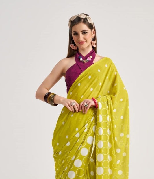 Green Polka Dot Georgette Readymade/Easy Saree
