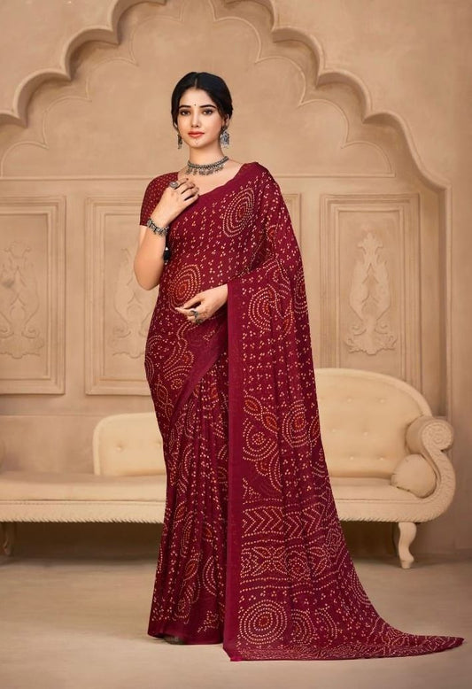 Casual Red Georgette Readymade/Easy Saree
