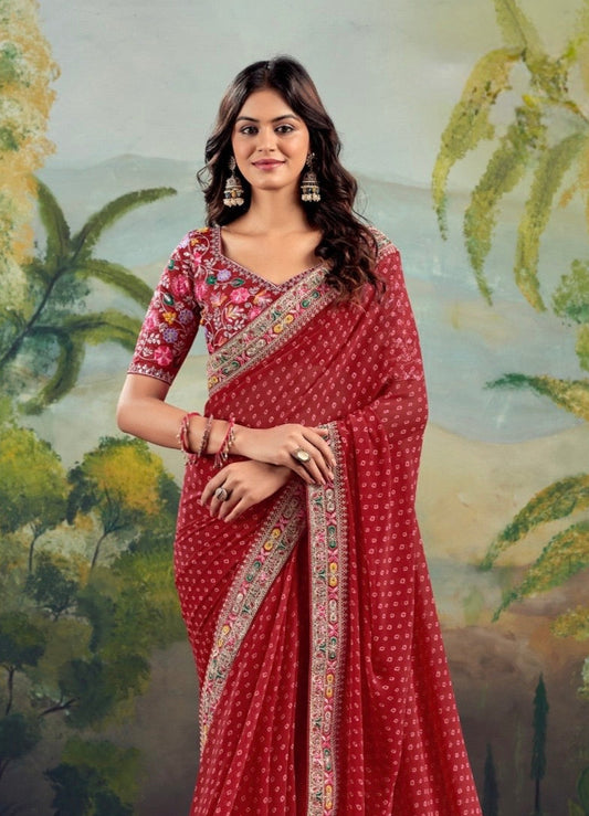 Red Georgette Readymade/Easy Saree