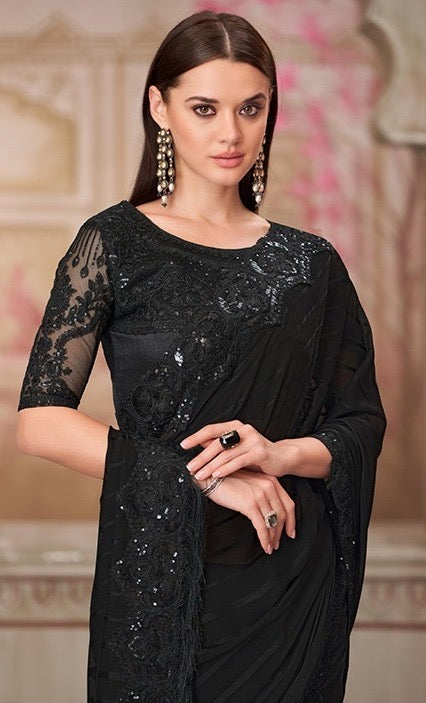 Black Color Cocktail Readymade Saree
