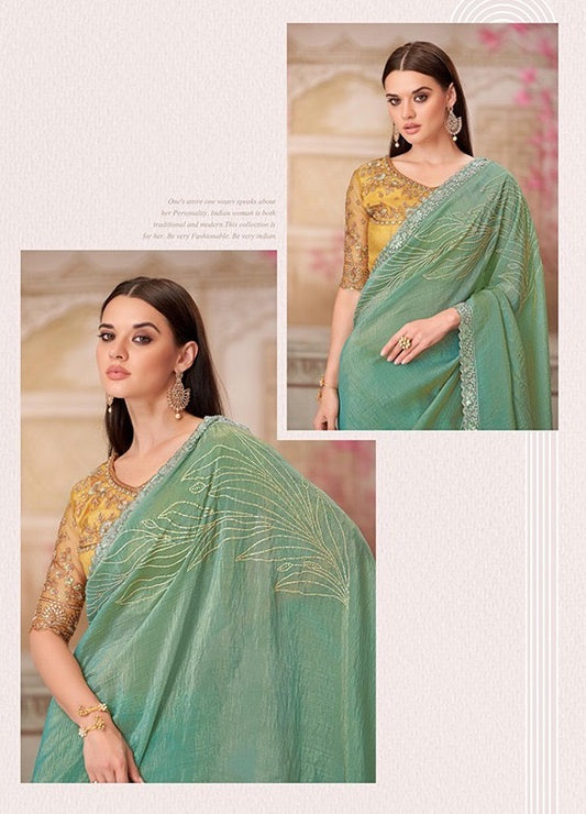 Spring Green Color Cocktail Readymade Saree