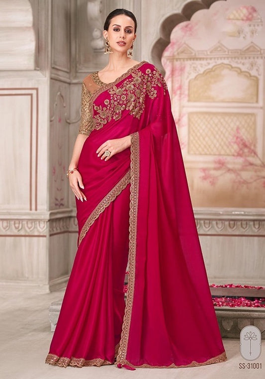 Pink & Red Georgette Readymade/Easy Saree