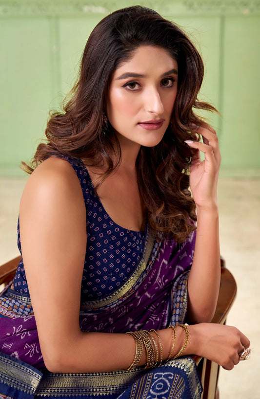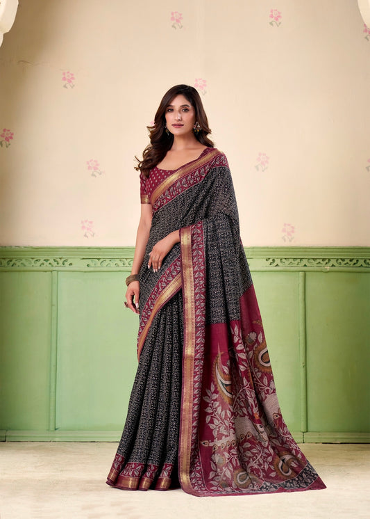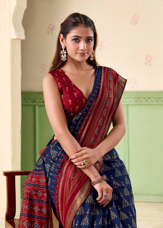 Navy Blue Mul Cotton Easy/Readymade Saree