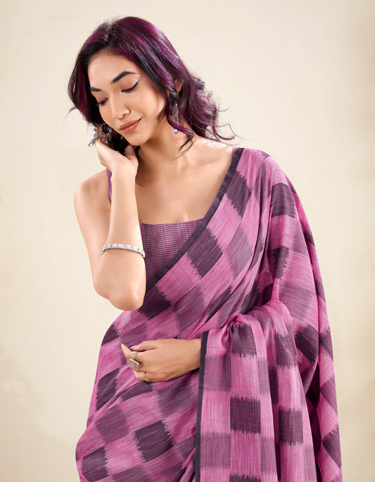 Pink Checks Linen Office Wear Easy/Readymade Saree