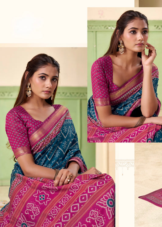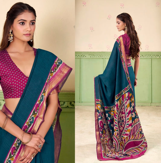 Plain Turquoise Mul Cotton Easy/Readymade Saree
