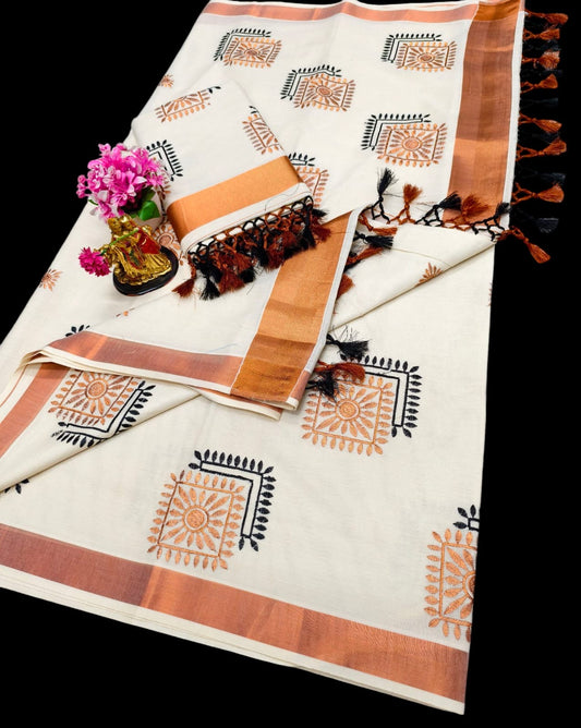Kerala Mul Cotton Kasavu Easy/Readymade Saree
