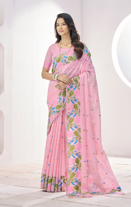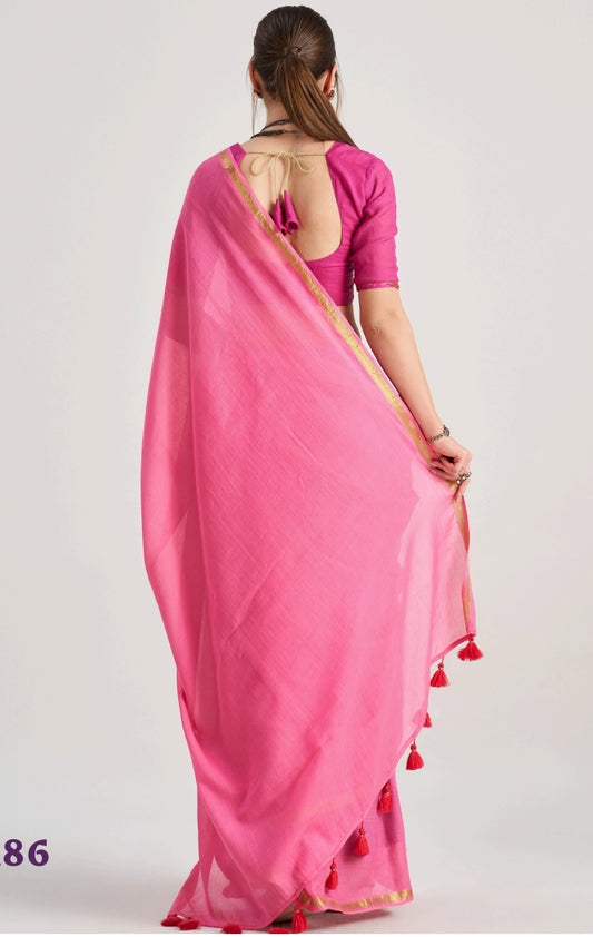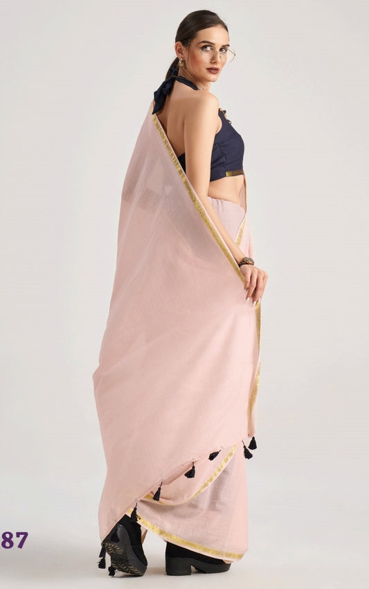 Baby Pink Mul Cotton Casual Readymade/Easy Saree
