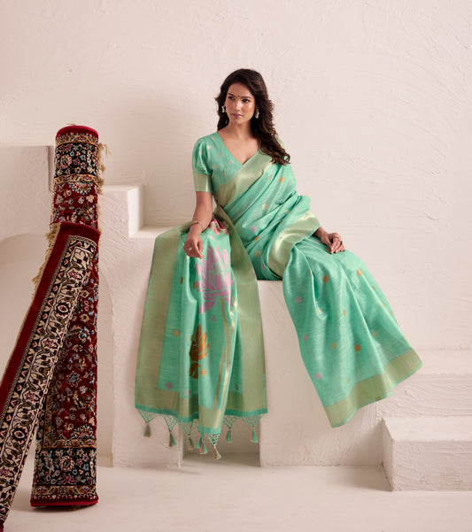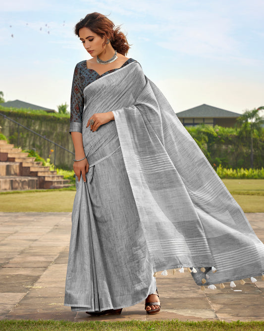 Sky Blue Linen Office Wear Readymade/Easy Saree