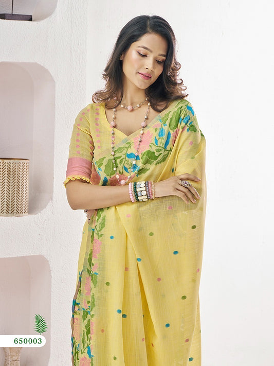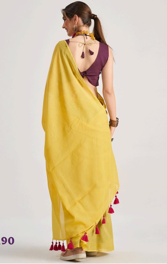 Yellow Mul Cotton Casual Readymade/Easy Saree