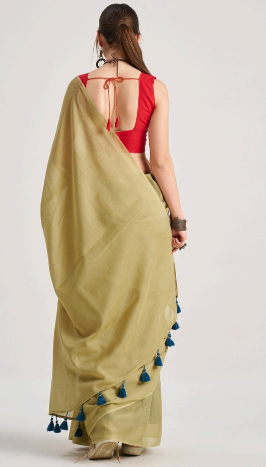 Khaki Mul Cotton Casual Readymade/Easy Saree