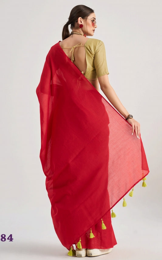 Peach Mul Cotton Casual Readymade/Easy Saree