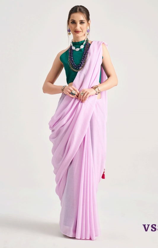 Lavender Mul Cotton Casual Readymade/Easy Saree