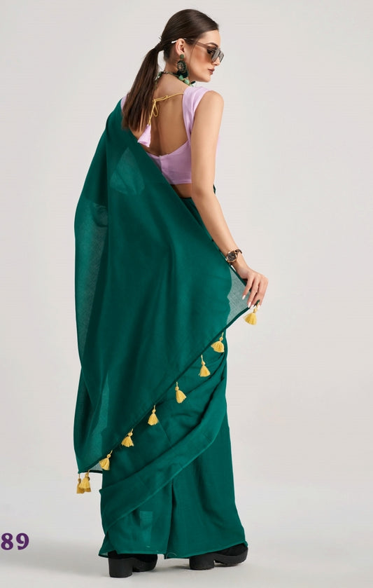 Dark Green Mul Cotton Casual Readymade/Easy Saree