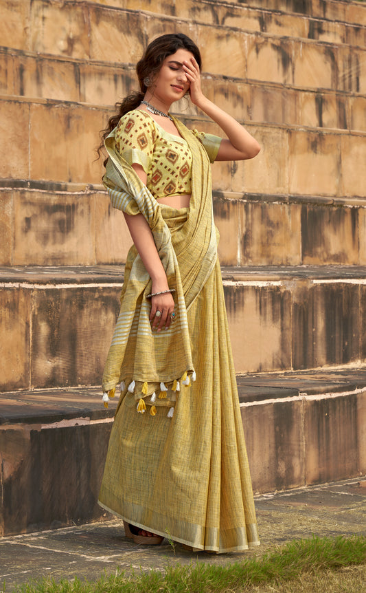 Mustard Linen Tissue Readymade/Easy Saree