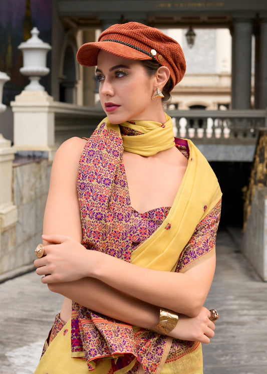 Yellow Color Resham Woven Cotton Office Wear Easy/Readymade Saree