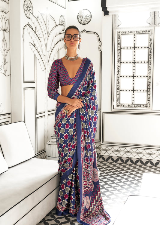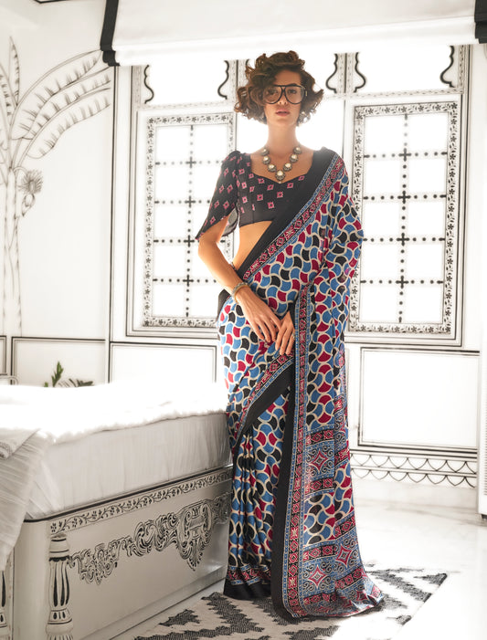 Multicolor Readymade/Easy Crepe Silk Saree