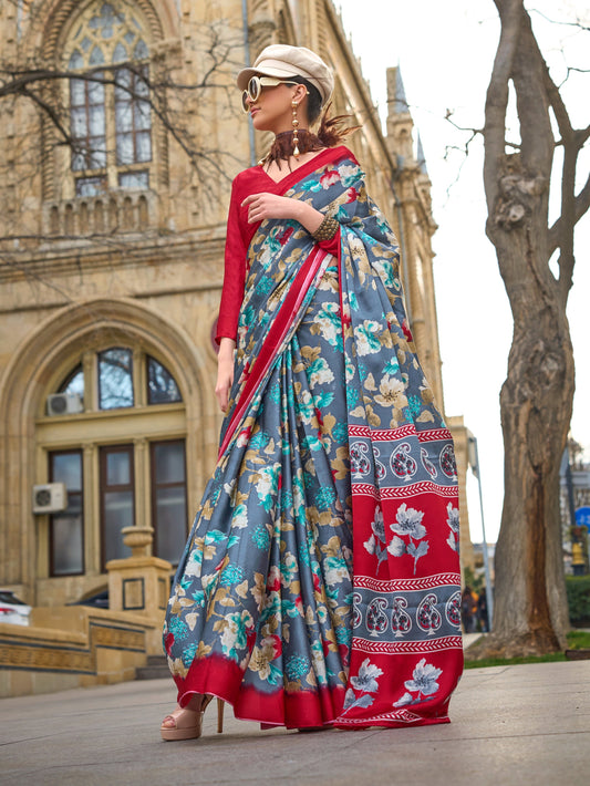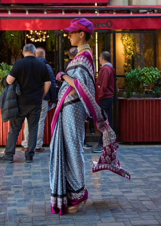 Grey Color Resham Woven Linen Cotton Easy/Readymade Saree