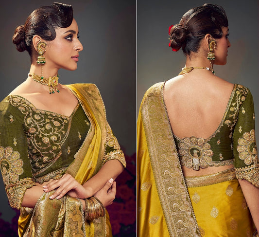 Mustard Color Designer Kanjivaram Readymade/Easy Saree