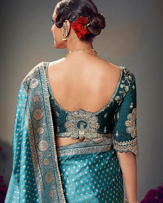 Blue Color Designer Kanjivaram Readymade/Easy Saree