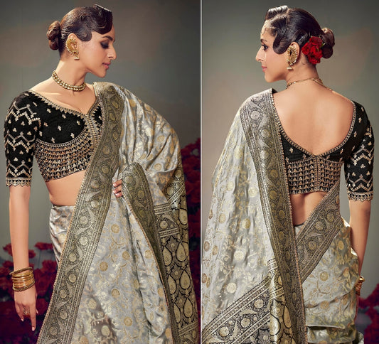Grey Color Designer Kanjivaram Readymade/Easy Saree