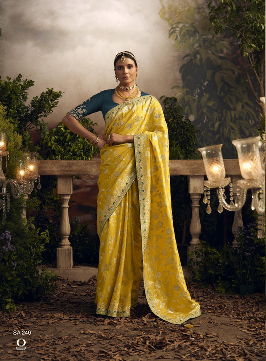 Yellow Color Designer Kanjivaram Silk Readymade/Easy Saree