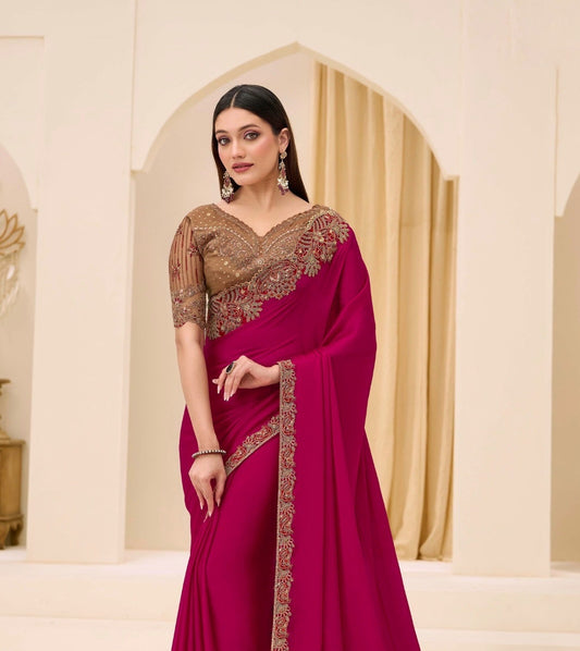 Rose Pink Cocktail Party Wear Readymade Saree