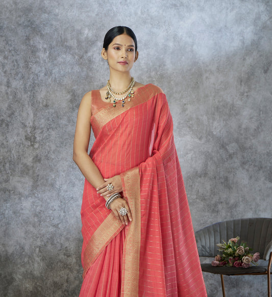 Coral Pink Cotton Silk Easy/Readymade Saree