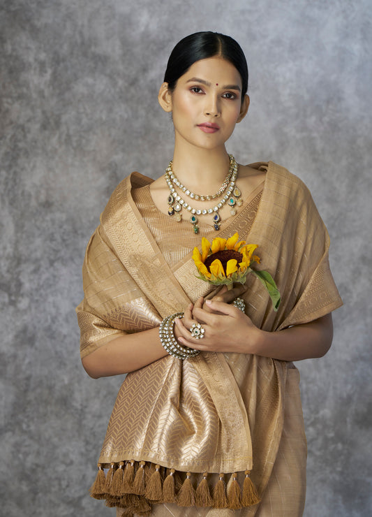 Champagne Gold Cotton Silk Easy/Readymade Saree